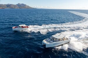 Pensé pour le plaisir avant tout, le YOT 36 se distingue par son cockpit modulable, ses larges plateformes latérales ouvrantes créant une véritable terrasse sur l’eau, et ses sensations de navigation puissantes grâce à une motorisation pouvant atteindre 800 chevaux.