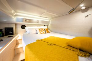 À bord, tout est conçu pour vivre la mer autrement : détente, partage et liberté, dans un bateau à la fois élégant, innovant et résolument tourné vers le fun.