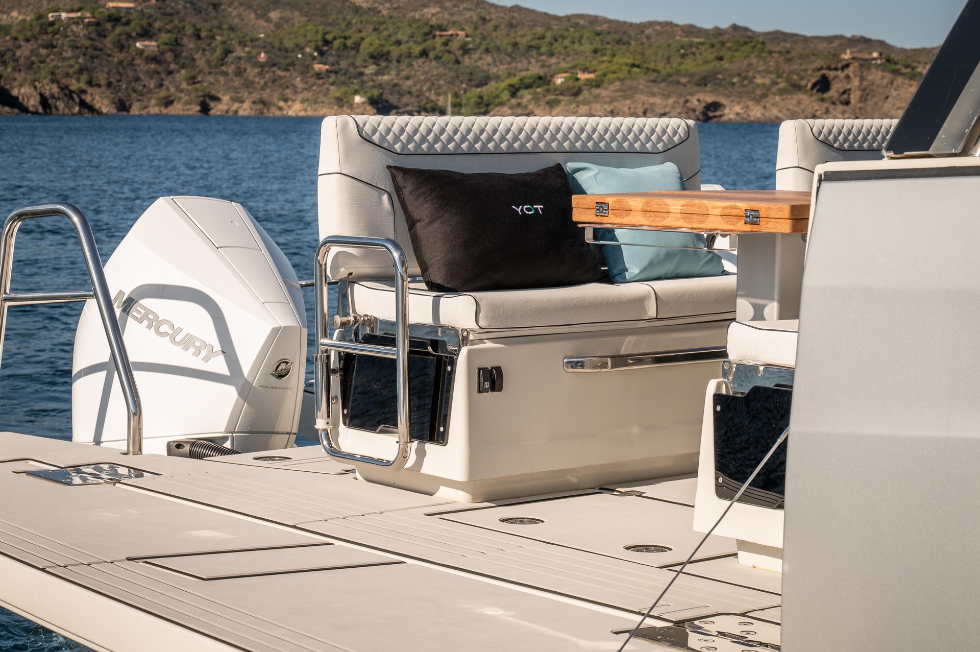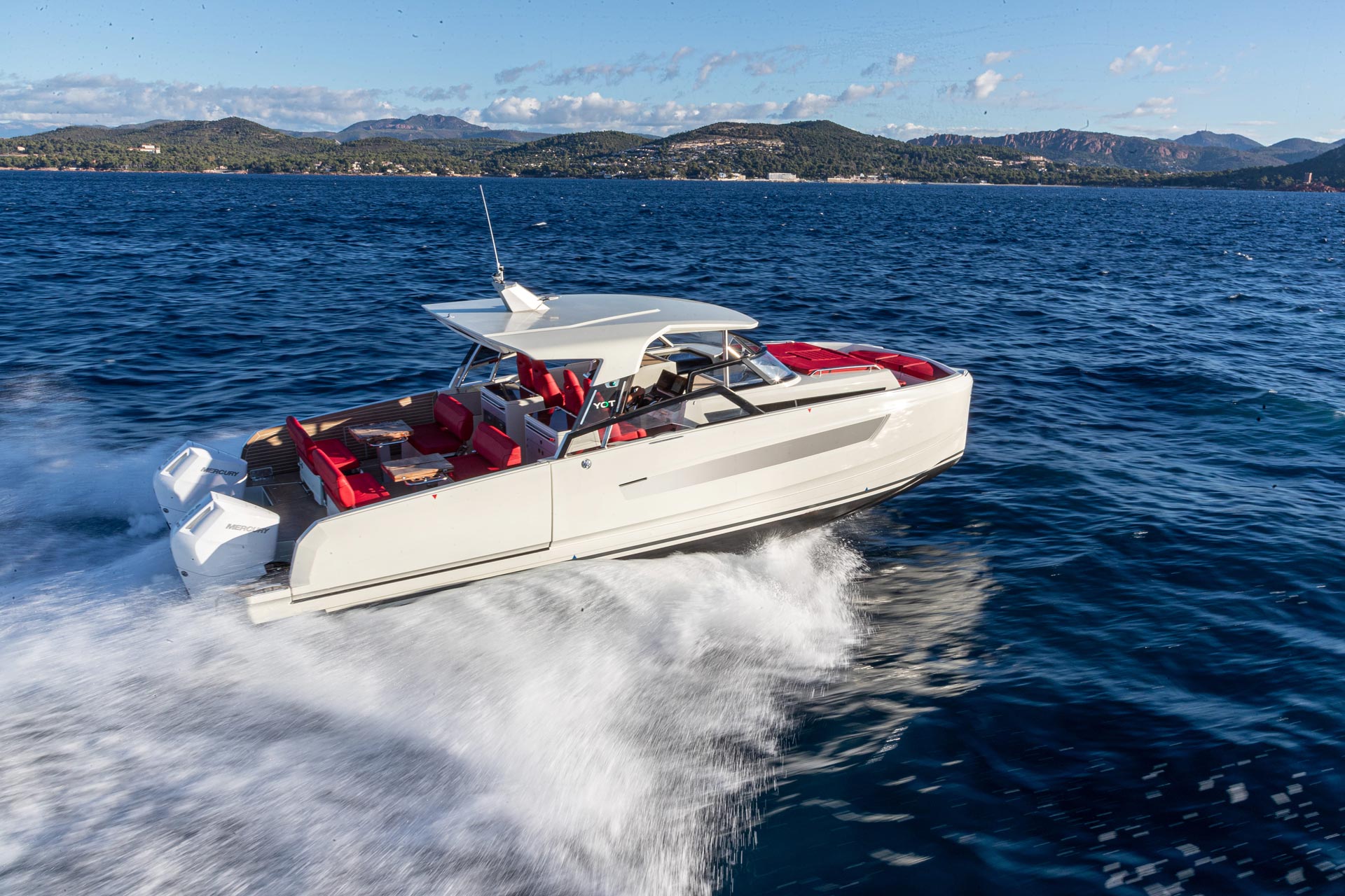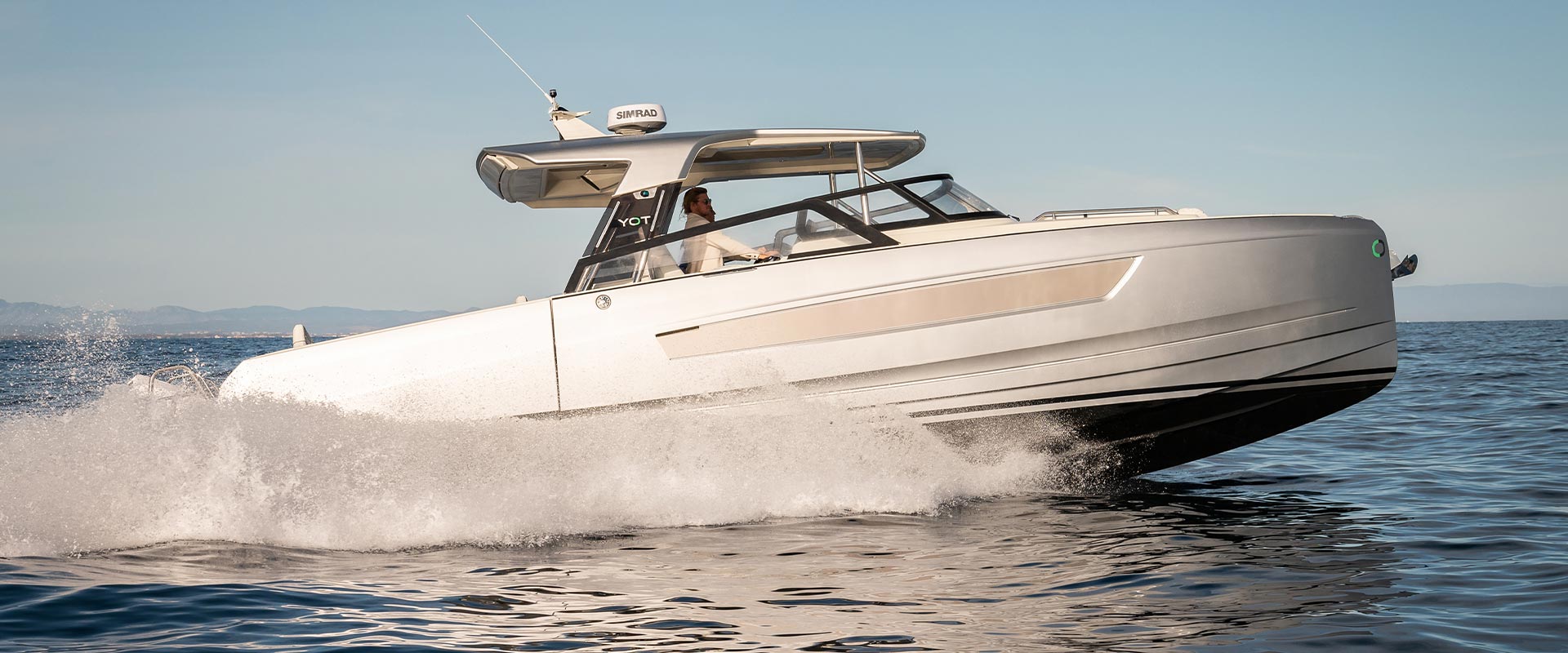 Pensé pour le plaisir avant tout, le YOT 36 se distingue par son cockpit modulable, ses larges plateformes latérales ouvrantes créant une véritable terrasse sur l’eau, et ses sensations de navigation puissantes grâce à une motorisation pouvant atteindre 800 chevaux.