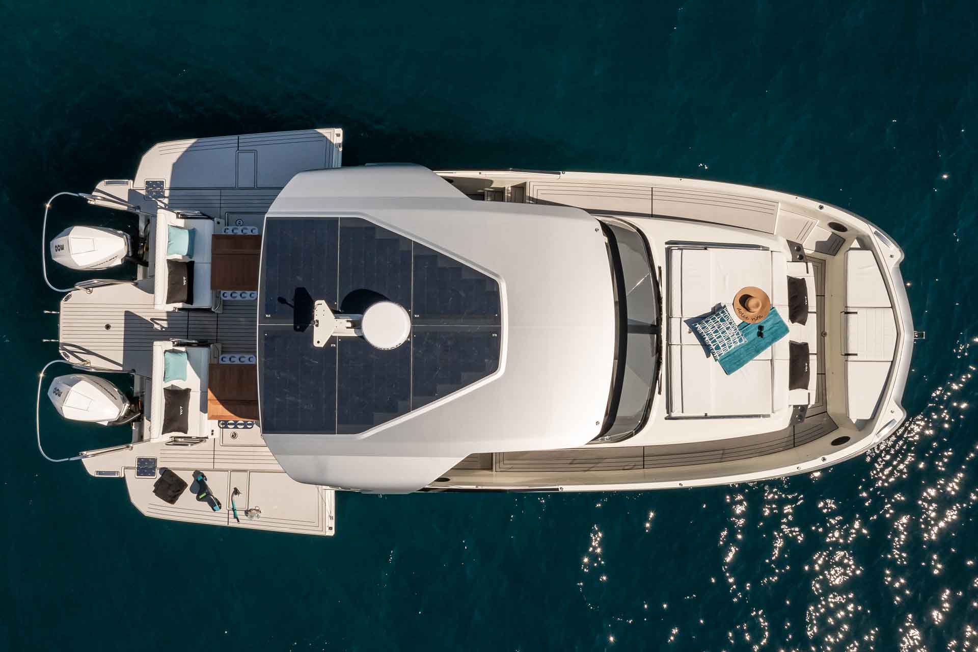 À bord, tout est conçu pour vivre la mer autrement : détente, partage et liberté, dans un bateau à la fois élégant, innovant et résolument tourné vers le fun.